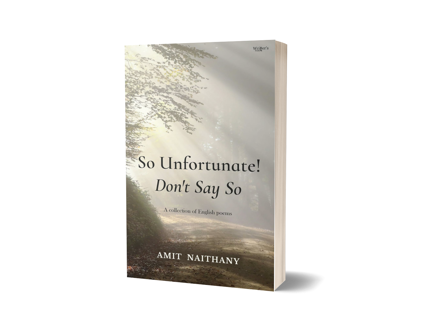 ‘So Unfortunate! Don’t Say So’ is a collection of English poems written, by Amit Naithany, with the purpose of strengthening the most vital chord of optimism, theism and self-confidence. This book highlights the idea ; ‘If the objective is noble, all the positive powers will be there for the success of the mission’. These informative poems contain philosophical approach and imagery to reflect the reality of modern society. These poems make the readers think and find out the most suitable solution to personal, local and global problems Furthermore, this book showcases the heroic efforts of women in saving trees.